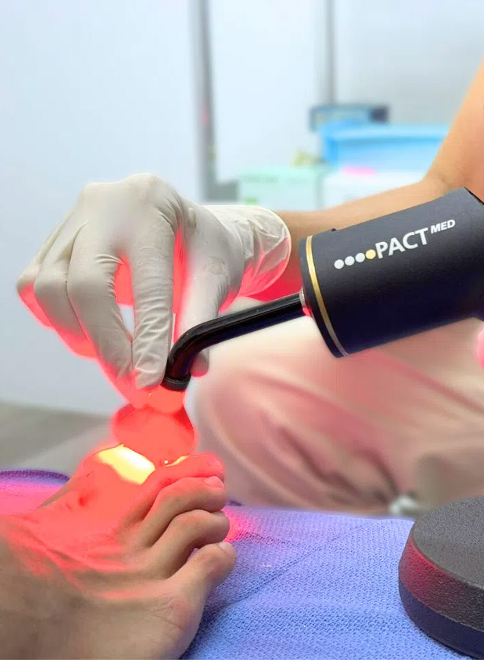 Photodynamic Therapy is an alternative treatment provided by Galleria Podiatry to treat toenail fungus. A single PACT nail fungus treatment session will involve the following: